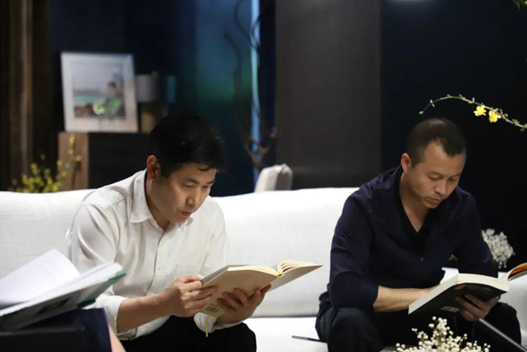 (集團(tuán)員工在會(huì)客廳閱讀書籍)