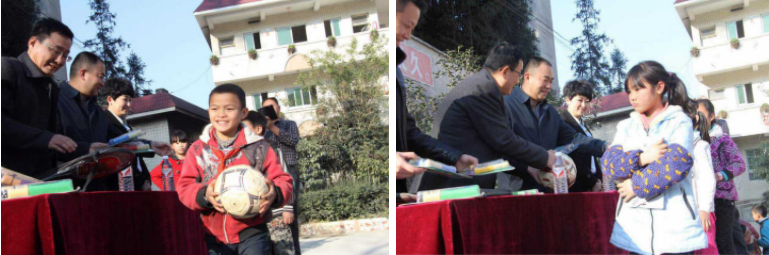 在貴定縣中國(guó)運(yùn)動(dòng)員希望小學(xué)操場(chǎng),慰問(wèn)團(tuán)舉行了“愛(ài)心捐贈(zèng)儀式。儀式上,慰問(wèn)團(tuán)將捐贈(zèng)的籃球、足球、羽毛球、兵乓球、跳繩等體育用品分發(fā)給貧困學(xué)生,并給他們組裝了籃球架和兵乓球架,勉勵(lì)他們發(fā)奮學(xué)習(xí),爭(zhēng)取早日成才,回報(bào)社會(huì)。中國(guó)運(yùn)動(dòng)員希望小學(xué)校長(zhǎng)羅紹明對(duì)慰問(wèn)團(tuán)的愛(ài)心善舉表示感謝,他說(shuō)到:“中國(guó)運(yùn)動(dòng)員希望小學(xué)地處大山深處,學(xué)校大多數(shù)學(xué)生為農(nóng)村留守兒童,特困學(xué)生較多,社會(huì)力量為學(xué)校建立體育設(shè)備,捐贈(zèng)體育用品,這豐富了同學(xué)們的課余生活,改繼變同學(xué)們的世界觀發(fā)揮了非常積極的作用”。同時(shí),他也表示,希望社會(huì)各界能夠支持希望小學(xué),關(guān)愛(ài)留守兒童,關(guān)心貧困學(xué)生。
