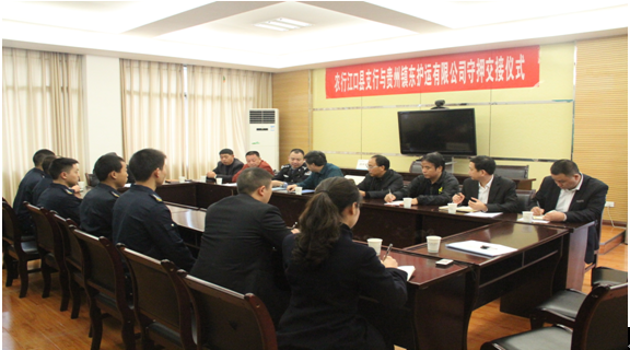 經(jīng)過(guò)半年的業(yè)務(wù)對(duì)接和洽談,銅仁本部于11月16日至20日正式接手德江、石阡、印江、江口、松桃五縣農(nóng)業(yè)銀行守押業(yè)務(wù)。銅仁市公安局保安大隊(duì)大隊(duì)長(zhǎng)王世軍、銅仁市農(nóng)行副行長(zhǎng)任達(dá)輝、銅仁市農(nóng)行保衛(wèi)部經(jīng)理?xiàng)蠲、銅仁本部總經(jīng)理陳葉、副總經(jīng)理劉興華、劉樹(shù)等出席了五縣守押業(yè)務(wù)交接儀式。