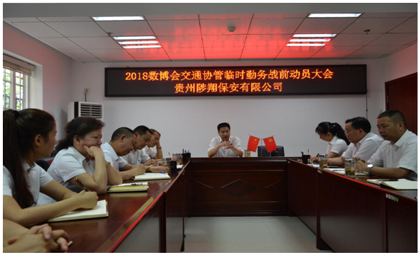 2018中國國際大數(shù)據(jù)產(chǎn)業(yè)博覽會于5月26日至29日在貴陽舉行,作為貴州保安行業(yè)的領軍企業(yè),貴州陟翔保安有限公司承接了貴陽數(shù)博會園區(qū)500名交通協(xié)管臨時勤務,為確保此次臨時勤務的順利實施和完成,5月18日下午,總公司全體員工、保安公司全體領導及大隊長在總公司會議室召開了2018數(shù)博會交通協(xié)管臨時勤務戰(zhàn)前動員大會,會上,總經(jīng)理陳春生同志對此次臨時勤務作出重要指示,并對此次臨時勤務做了統(tǒng)一安排部署。數(shù)博會勤務領導小組組長由總公司總經(jīng)理馮波擔任,指揮組組長由保安公司總經(jīng)理陳春生擔任,同時還成立了協(xié)調(diào)組、后勤保障組,新聞報道組等,對所有參與人員進行明確分工。