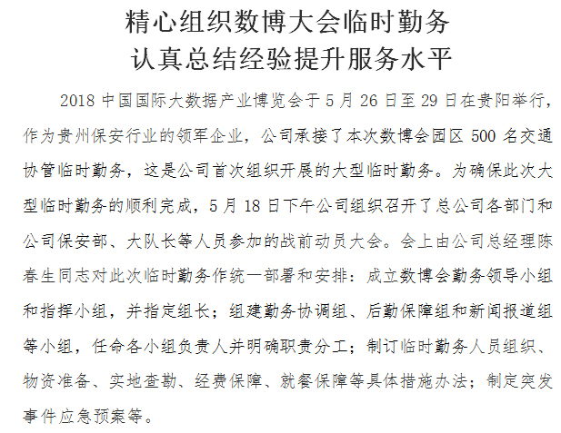 精心組織數(shù)博大會臨時勤務(wù) 認(rèn)真總結(jié)經(jīng)驗提升服務(wù)水平