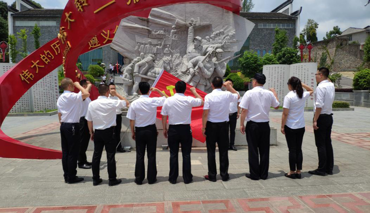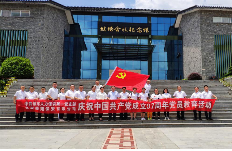 “銘記黨的奮斗歷程,時刻不忘初心;擔(dān)當(dāng)黨的崇高使命,矢志永遠奮斗”這段話是習(xí)近平總書記在瞻仰中共一大會址時強調(diào)的,為認(rèn)真貫徹習(xí)近平總書記講話精神,傳承紅色基因,“不忘初心,繼續(xù)前進”,在喜迎建黨97周年暨改革開放40周年之際,中共鎮(zhèn)東人力保安第一黨支部及貴州陟翔保安有限公司于2018年6月29日組織參觀學(xué)習(xí)了紅色教育基地---猴場會議紀(jì)念館、猴場會議會址。8名黨員、1名預(yù)備黨員、3名積極分子、9名受邀群眾參加了此次活動。
