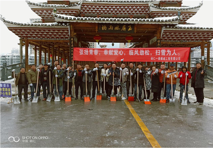 上午10點,員工們頂著風(fēng)雪,陸續(xù)來到公司。在項目部張總的帶領(lǐng)下,大家不畏嚴(yán)寒,揮舞著鐵鍬開始對縣城風(fēng)雨橋附近的人行道及斑馬線的積雪和結(jié)冰進(jìn)行清掃。大家你追我趕,齊心協(xié)力,配合默契,鏟的鏟、推的推、掃的掃,干的熱火朝天,不亦樂乎,忙碌的身影構(gòu)成了一道亮麗的風(fēng)景線。雖然室外溫度很低,但大家勞動的熱情和團(tuán)結(jié)的力量讓這個冬日變得格外溫暖。